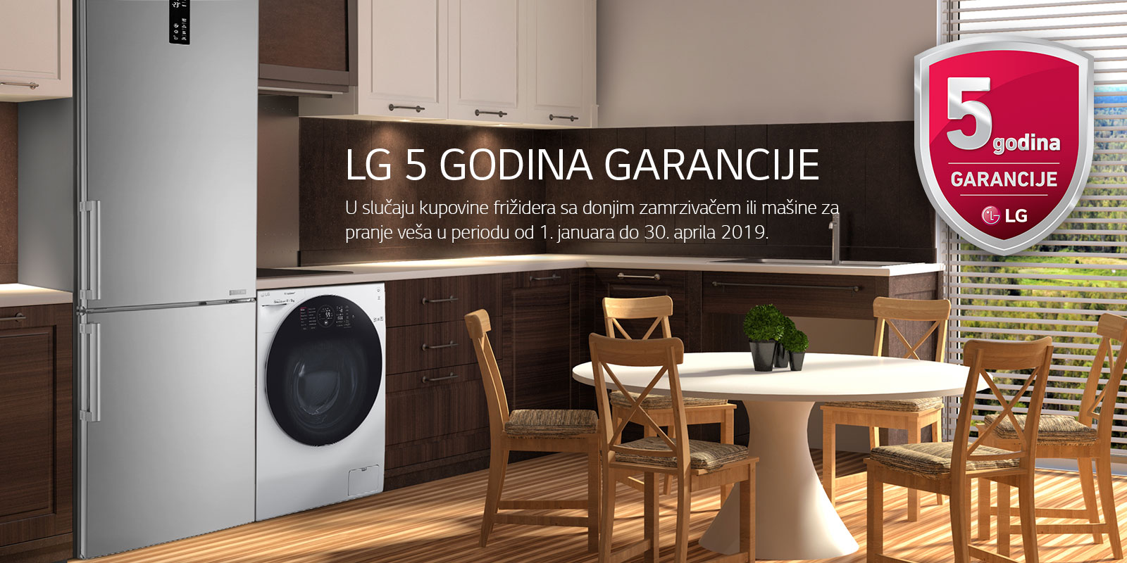 uz besplatnu 5-godišnju garanciju na odabrane LG frižidere i mašine za pranje.